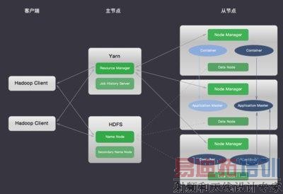 Hadoop是一个针对海量大数据进行存储和处理的分布式开源平台,在大数据领域的应用极为广泛。它使用简洁的MapReduce编程模型分布式处理跨集群的大型数据集,集群规模可以扩展到几千甚至上万。QingCloud Hadoop集群服务采用Master/Slave架构,由三种节点类型构成,即主节点(YARN Resource Manager和HDFS Name Node)、从节点(YARN Node Manager和HDFS Data Node),以及客户端节点(Hadoop Client Node)。用户在客户端节点发起MapReduce任务,通过与HDFS和YARN集群中各节点的交互存取文件、执行MapReduce任务,最终获取结果。