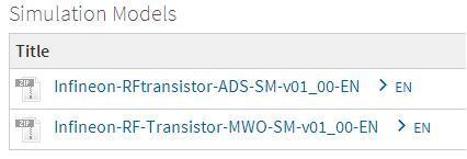 在选择了合适的器件型号以后,如果设计师需要在设计开始的阶段对器件的性能进行仿真评估,Infineon官网提供ADS和MWO两种软件的仿真模型。如下图。