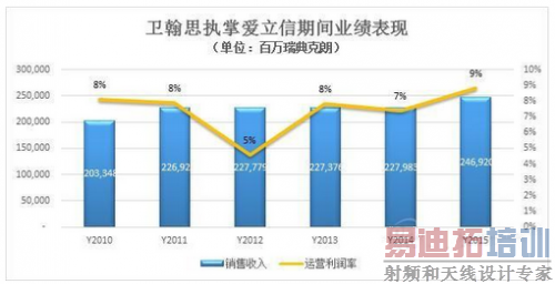 卫翰思于2010年1月1日正式就任爱立信CEO,到2016年为止共发布过6次年报,从这6份年报披露的公司财务数据来看,在卫翰思执掌爱立信的6年多时间里,其创造的业绩实在是差强人意:销售收入在6年间仅增长了20%,且始终在2000亿到2500亿瑞典克朗(约300亿美元)间徘徊,而运营利润率则一直低于10%。
