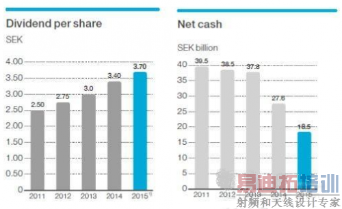 但是对照5年间爱立信现金存量的变化来看,则呈现了完全相反的逐年递减的态势,五年间现金存量减少了53%。也就是说在卫翰思执政的这几年,公司的销售收入和经营利润停步不前,但针对股东的现金分红却在逐年增加,导致公司的现金存量大幅减少,并最终影响到公司针对未来发展和业务转型的投资支出受到压缩。以2015年财报披露的数据为例,当年爱立信现金流量表内,用于股东分红的现金支出是113亿瑞典克朗,而用于资产、厂房和设备等投资的现金支出仅为80亿瑞典克朗。