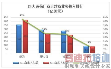 可以看出,在公司整体业务收入上,四大通信厂商在2016年的表现和排名相对2015年变化并不大: