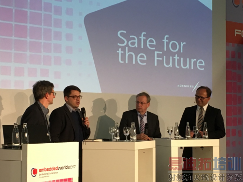 Silicon Labs副总裁兼物联网产品总经理Daniel Cooley(左二)在本届嵌入式世界展举办的"面向未来的安全性"论坛上发言,安全性已经成为物联网行业的热点之一