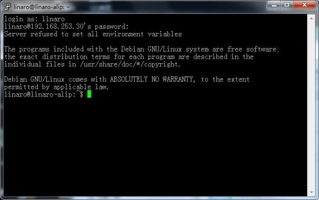 从官方手册上可以知道,这里给出的linux镜像是来自 Linaro并基于 Debian 内核版本为v4.2.4 ,首次启动龙板第一印象是“快”,都没来及拍上启动画面,系统用户户名和密码均为:linaro