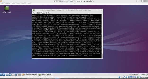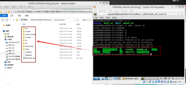 上一篇小e试用贴介绍了小e的功能初步体验效果,并解决了个别手机微信控制端无法和开发板正常绑定的问题。体验过板子的强大功能之后,我们就要开始逐渐深入小e的底层开发了,没有这些底层的支持小e是不可能有这样的完美效果和强大功能的。玩一个板子,就要明白它的如何工作的,也只有了解了其底层原理,以后板子出现非硬件故障我们也好对其进行“维修”,才能够让其实现我们自己想要的功能。因为小e开发板到手时候是已经刷好固件的了,但是官方已经开放了固件源码,这个源码经过编译之后最终生成的就是小e具有各种功能的bin固件。我们在利用lubuntu虚拟机编译固件源码之前建立的共享文件以及为什么要将官方固件源码et_iot_source这个文件夹复制到此共享文件中的最终目的:就是为了编译此源码生成固件,并将生成的固件烧录到小e开发板!接下来我们就开始体验一下编译固件和烧录我们自己编译好固件的感觉!这个感觉其实是棒棒的^_^ 首先我们需要使用到的有以下3个资源,这个在官方的环境搭建教程当中介绍过,也有相应的资源共大家下载(网盘资源:http://pan.baidu.com/s/1jHj4FHG):