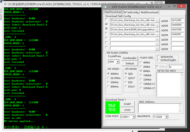 至于烧录软件的文件地址目录设置、波特率等基本信息设置在官方教程中有详细说明,就不再多说了。