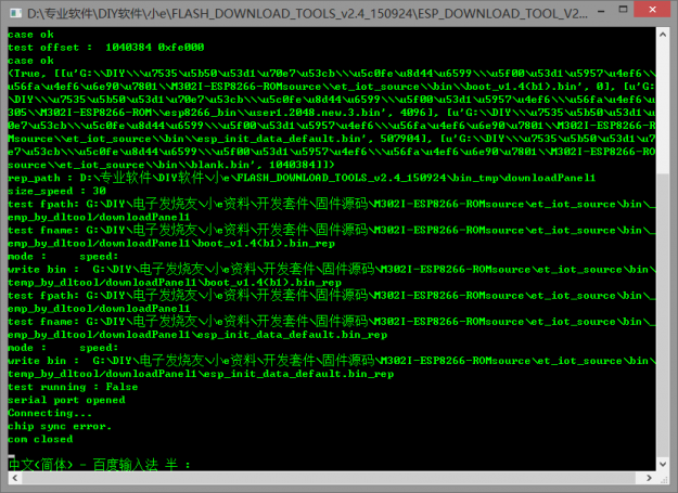 烧写软件打开之后DOS窗口会自动弹出并打印软件相关配置信息,包括波特率、COM口等基本信息: