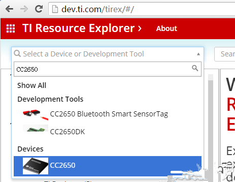 用Chrome浏览器打开网址:http://dev.ti.com/tirex/。这是网页版的TI Resource Explorer,里面有TI的MSPWare、TM4C ARM、CC26xx、CC3200和TI-RTOS的资料,而且这里的资料都是最新的。在上部搜索框里搜索CC2650,会出来CC2650 Buletooth Smart SensorTag,这个就是要找的资料了。