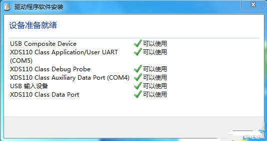 导入了工程,我们可以直接编译程序了(虽然不知道编译出来能否正常运行)。但在编译之前,我们需要连接好硬件。先准备一条micro usb数据线,把Debugger DevPack仿真器连接到电脑。在电脑上会显示正在安装驱动程序,然后等一会驱动程序安装完毕,点开可以看到: