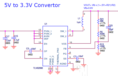 原来板子是从USB口J5/J6取电和调试,供电芯片TI自家的TP79603, 提供3.3V@1A电源。