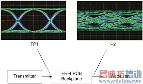 更高的数据传输速率引入新的设计挑战(如印刷电路板的导体趋肤效应和介电损耗),以及设计权衡相关的过孔,叠层,和连接器引脚。评估的背板材料的选择和各种结构的影响,需要在频域和时域进行精确的测量。精确的测量为成本/性能权衡决策提供了信心。其目的是通过眼图评估互连的影响。图2示出背板在眼图上的影响的一个例子。