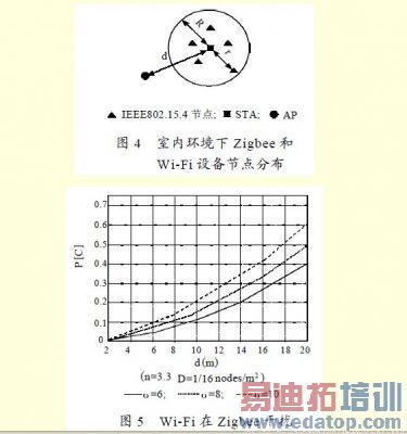 针对上述模型做定性分析,由于Zigbee 底层协议IEEE802.15.4 中有着特殊的睡眠机制,节点处于活动状态的概率一般小于1 %[4],γ可取为10dBm[7],AP 和Zigbee 的传输功率分别为14 dBm 和0 dBm。