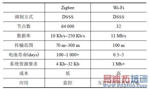 1 Zigbee 和Wi-Fi 的主要特性比较