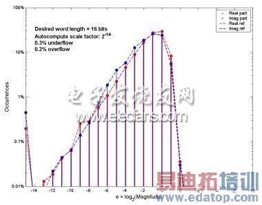 偏重于信号范围的高端并非总是正确的方法。因为有时候小信号也起着关键的作用,例如在信道估计和补偿算法中。关键是设置定点量化值需要一些技巧,尤其是字长较短时。自动计算工具可以提供粗略的估计,不过细调则需要可视化与经验的结合。接下来的步骤包括分析发射机中单个模块的输出信号的动态范围,细调模块的定点设置,并将这些技术转用到接收机中。