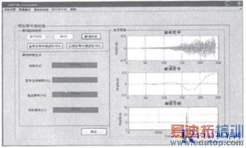 图形用户界面具有很强的交互性,在这样的一个良好的用户界面中可以方便地进行通信系统的参数设置,可以同步显示通信信号经过每一步处理后的波形,能够
