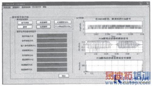 (4)信号图像显示模块,对输入到通信信号处理系统中的模拟信号,显示其时域、频域波形,及信源编码后的PCM码流波形。