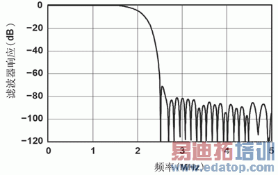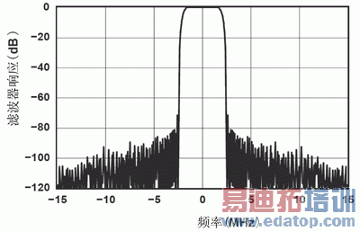 ADC5553不需要软件配置,只要给它稳定的61.44MHz时钟就可以了。系统的滤波功能主要在GC5016中实现,WCDMA对于滤波的要求如图3所示。DAC5687需要完成内插/滤波及上变频的功能,可通过串行接口对其进行编程。