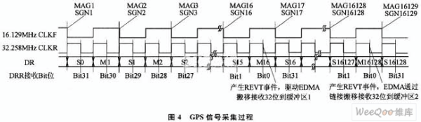 采用基于McBSP、EDMA、SDRAM构成的GPS信号采集方案,主要分为接口配置和信号采集两个阶段。接口配置阶段依次完成EMIFA、EMDA、中断和McBSP0配置,使其工作在一定工作模式下,最后通过置位McBSP接口控制寄存器中的RRST启动采集过程。信号采集过程基于硬件实现,完全与CPU并发,在ms数据接收完成后与CPU通过中断INT_8同步数据。具体采集过程如图4所示。