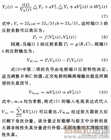 因为三阶分量和五阶分量是对放大器非线性影响最大的因素,为了分析方便,就只取到展开式的5次方项。这时二极管对可看作为单端口网络,其导纳为: