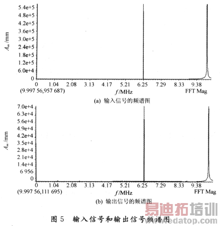 图5为输入、输出信号的频谱图。