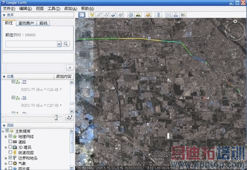 输出的数据可以在Google Earch进行查看,Google Earch从网上轻松的下载到。下载Google Earch软件,运行后。在菜单栏,选择文件=>打开选中由Motorola SCOUT记录下来的数据文件(*.kmz格式)。