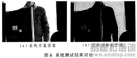 该系统设计已成功测试,测试结果达到预期要求,并对其进一步改进优化。图6为系统采集的图像和压缩16倍后室内有阻隔传输30 m的结果