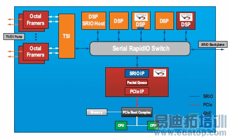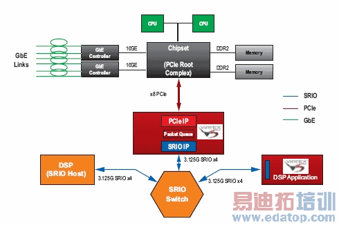 在Xilinx FPGA中设计此类桥接功能很简单,因为这些Xilinx端点功能模块、PCIe和SRIO的后端接口都很相似。这样,"包队列"模块便可执行从PCIe到SRIO或反方向的交叉任务,从而建立可穿越两个协议域的包流。