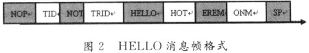 当系统布设完毕进入稳定状态后,Sink节点开始广播HELL0消息,其格式如图2所示。