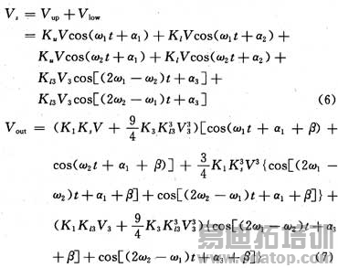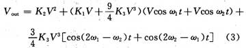 若输入为等幅双音信号:Vin=Vcosω1t十Vcosω2t,则非线性放大器的输出可以表示为:
