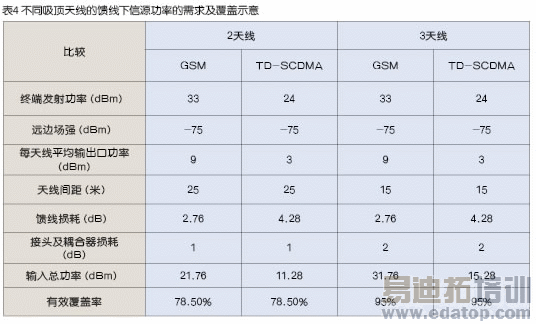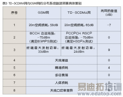 从而得出TD-SCDMA网与GSM网的分布系统链路预算具体差别如表3所示。