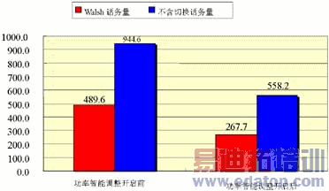 可见,功率智能调整方案启动后,每爱尔兰话务量的功率效率提升45%,不含软切换话务量的功率效率提升41%。