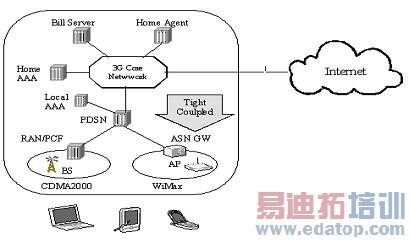图4 利用WiMax和移动网综合来为移动用户提供高速数据结构图