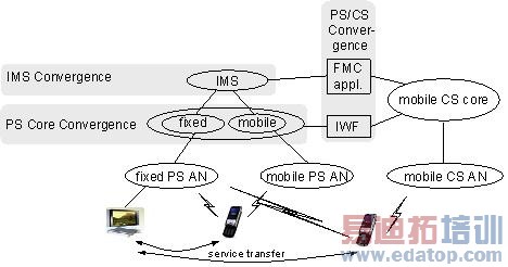 ● 控制层面的融合:由统一的核心网络支持固定接入和移动接入,例如基于统一IMS网络,UMA中基于jiyu GSM/UMTS的方式。
