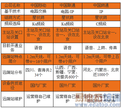 表1:目前村通工程中各运营商运用VSAT卫星通信方式简况
