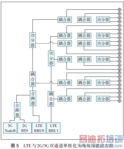 此方案需要对原2G/3G分布系统的器件进行改造(包括无源器件和天线)以支持LTE频段的要求。同时,在增加合路后,可能会对现有系统造成影响,而且需要新增1个天线端口,增加天线的占用空间。