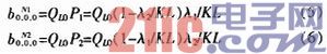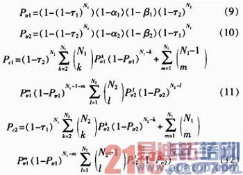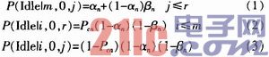 对于图2(a)所示的OSTS机制,在文献中已经详细说明了其状态转移特征,这里不加赘述。对于BSTS机制来说,一次传完所有的数据包,可以理解为数据包的长度由原来的变成了(表示缓存的容量),这样,可以不用考虑缓存中的队列的分布,那么,文献中的表达式(5)~(11)中的μ0可以设置为1,即节点在成功传送完成数据包后、访问失败后、传送失败后直接进入休眠状态,那么,表达式(9)~(11)可以省略,而表示式(5)~(8)可以写成: