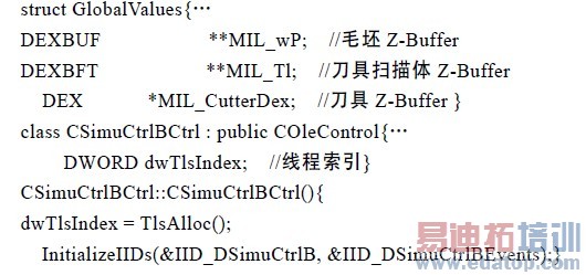 按照 TLS 要求该结构变量必须动态创建,如下代码表明了它的声明、创建过程,代码还表明每个ActiveX 组件构造时即调用API 函数TlsAlloc 获得一个线程索引,在局部堆申请到存储空间后用API 函数TlsSetValue 将该存储区地址与线程索引对应。