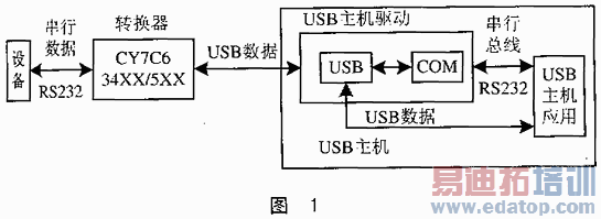 从应用的观点,设备驱动必须能收发数据,可以通过使用一个虚拟化的串口或通过转化为USB数据实现。微软提供了一个叫作USB POS的设备驱动,它允许应用程序访问USB设备时,好像它们连接到标准串口上一样。系统大致结构方框图如图1所示。