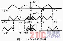 对于数字信号处理的整数倍内插,就是在两个原始抽样点之间插入(I-1)个零点,这就是整数倍内插如果原始抽样序列是x(n),那么经过整数倍内插后的序列可通过相应的数学表达式进行表达,但是可以画出内插、经过压缩后的频谱如图3所示。