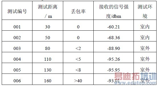 表1 zigbee 网络节点接收灵敏度测试结果