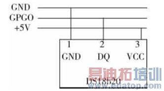 温度传感器采用美国Dallas 公司生产的单总线数字式温度传感器- DS18B20,它结构简单,不需要外接电路,可用一根I /O 数据线既供电又传输数数据,将温度信号直接转换为数字信号送给微处理器,电路简单,成本低,操作方便。DS18B20 与ARM 处理器接口电路如图2 所示。