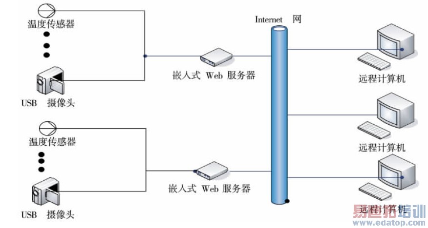 远程网络上的监控端为通用的PC 机和IE 浏览器,B /S 模式架构为人机交互提供了友好的交互平台,用户通过Internet 进行远程监控。