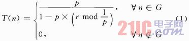 在簇的建立阶段,关键问题就是簇头的选择。为了选择簇头,网络内每个节点都随机生成一个介于0~1之间的数n如果n小于T(n),则其成为簇头,T(n)的计算方法如下: