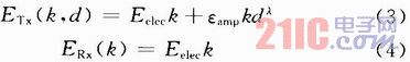 依据LEACH对无线传感器网络的假设,节点发送信息的能耗ETx(k,d)与接收信息的能耗ERx(k)分别为: