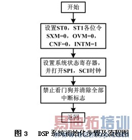 此部分程序设计主要是为了使DSP进入正常的工作状态。其主要的设计步骤如下图示。