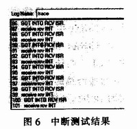 本例中设置传完2 048个数据后EDMA发送事件触发一次中断,调用的中断服务程序主要作用是发送一个旗语信号给信号处理程序,并打印出"GOT INTO RCV ISR",进入中断服务程序,随后已被阻塞的信号处理程序线程收到旗语信号后,开始运行,并打印信息"receive rcv int",中断测试结果如图6所示,可以看出中断在连续不断的被触发。