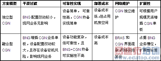 独立型CGN方案和融合型CGN方案各有优劣,其对比分析如表1。