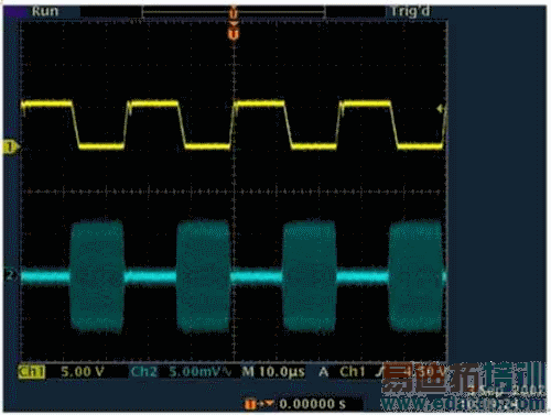 图2:MAX9933射频检测器对调制频率为10MHz、数据速率为40kbps的射频输入信号的响应。