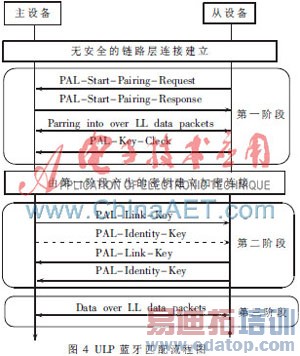 ULP蓝牙的匹配分三个阶段进行,其流程如图4所示。