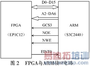这里采用总线接口,将FPGA作为一个存储设备挂在ARM的存储器总线上,如图2所示。