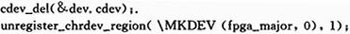 在卸载函数中,删除一个cdev,完成字符设备的注销,然后释放设备编号: